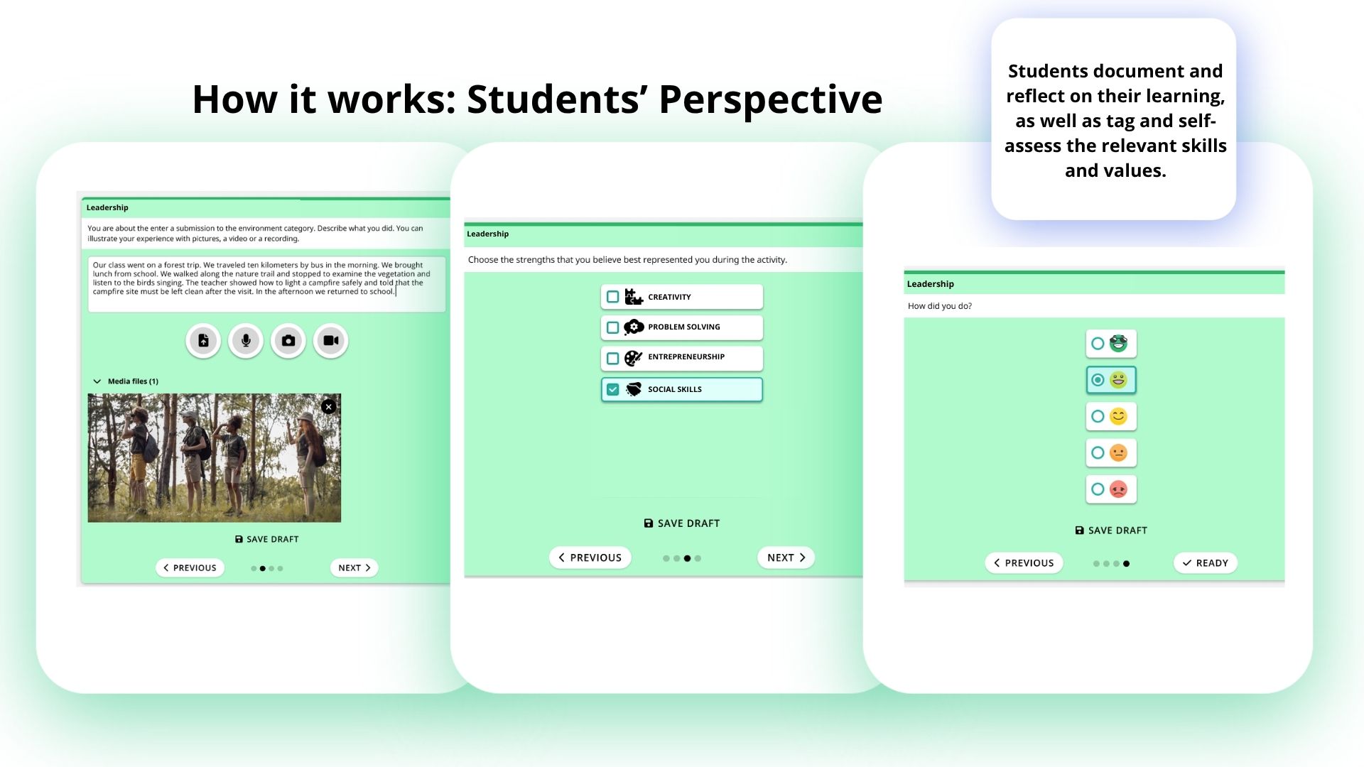 In practice, the platform works across three groups who all need different things from a learning portfolio: